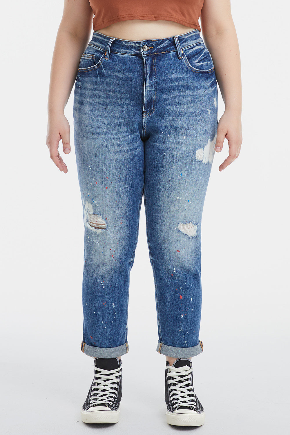 BAYEAS Full Size High Waist Distressed Paint Splatter Pattern Jeans