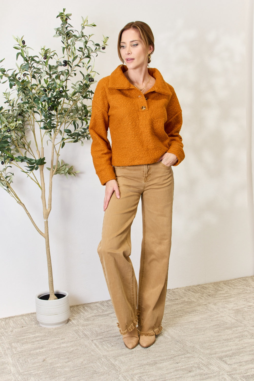 Culture Code Full Size Half Button Turtleneck Sweatshirt