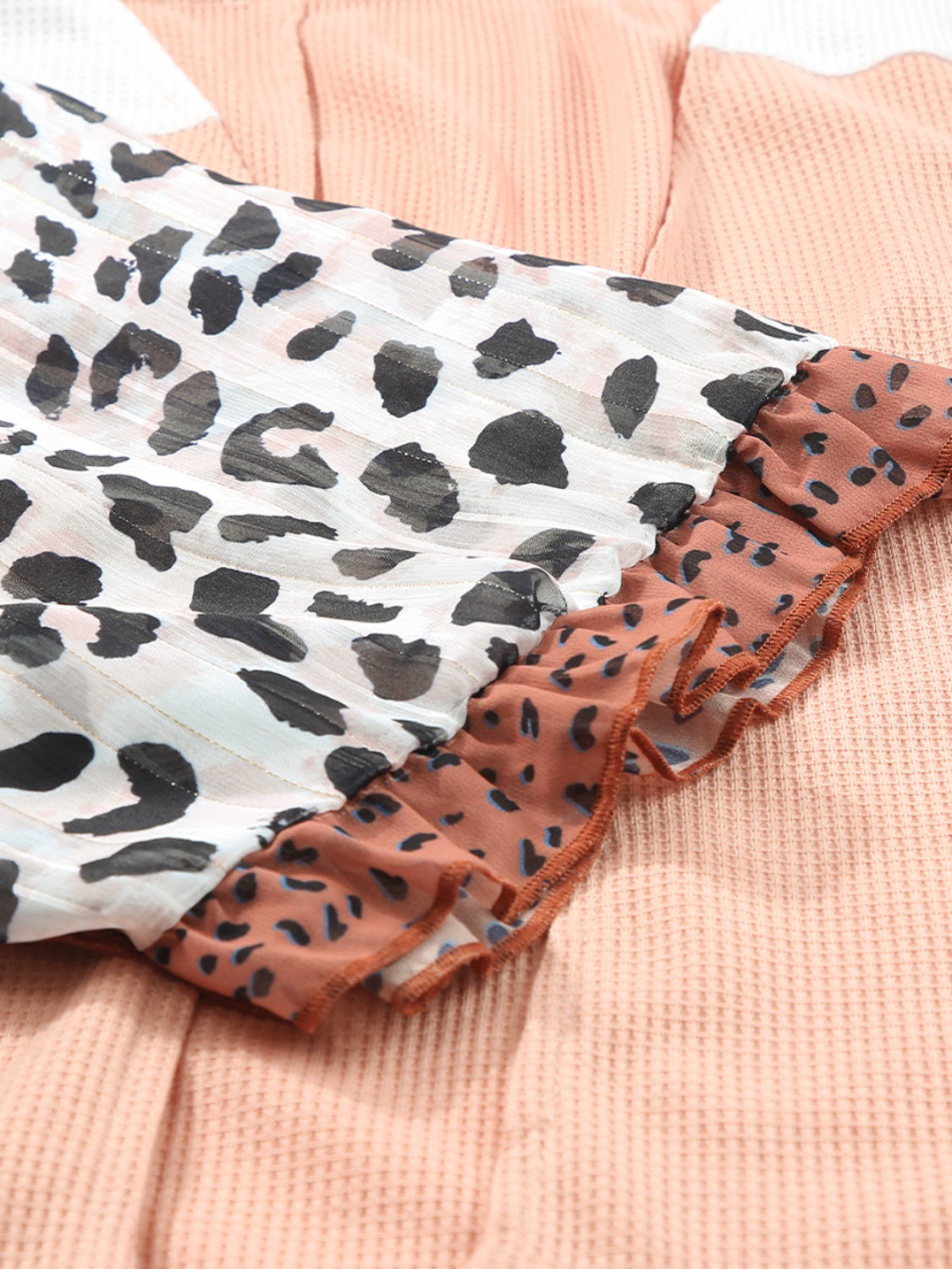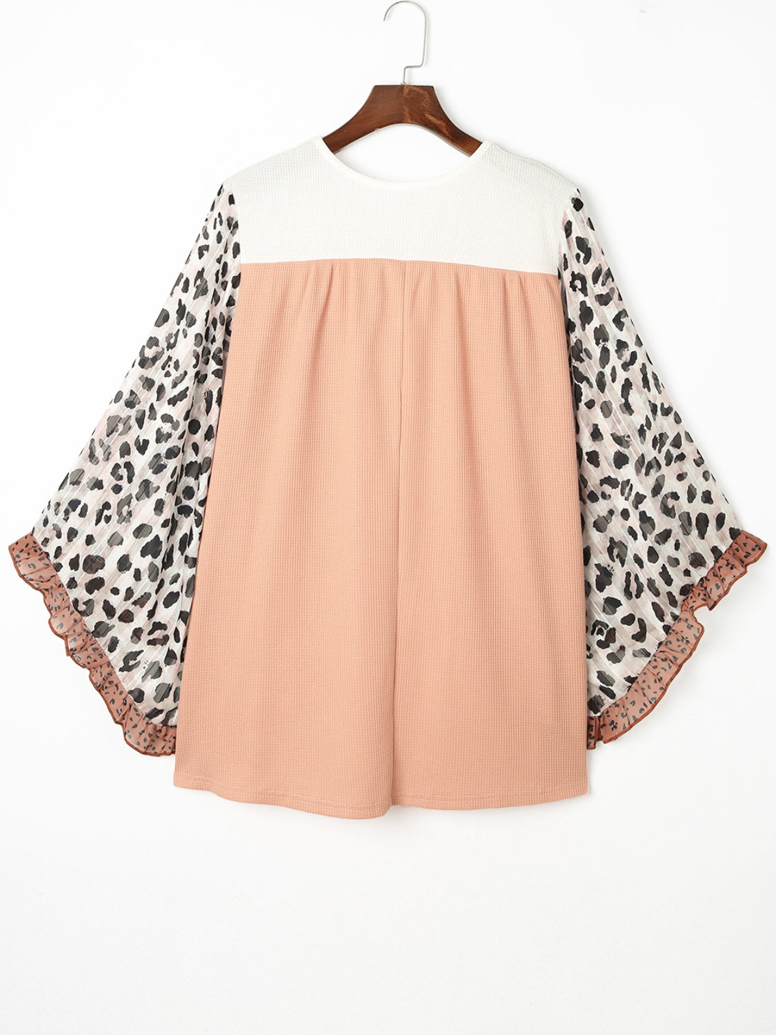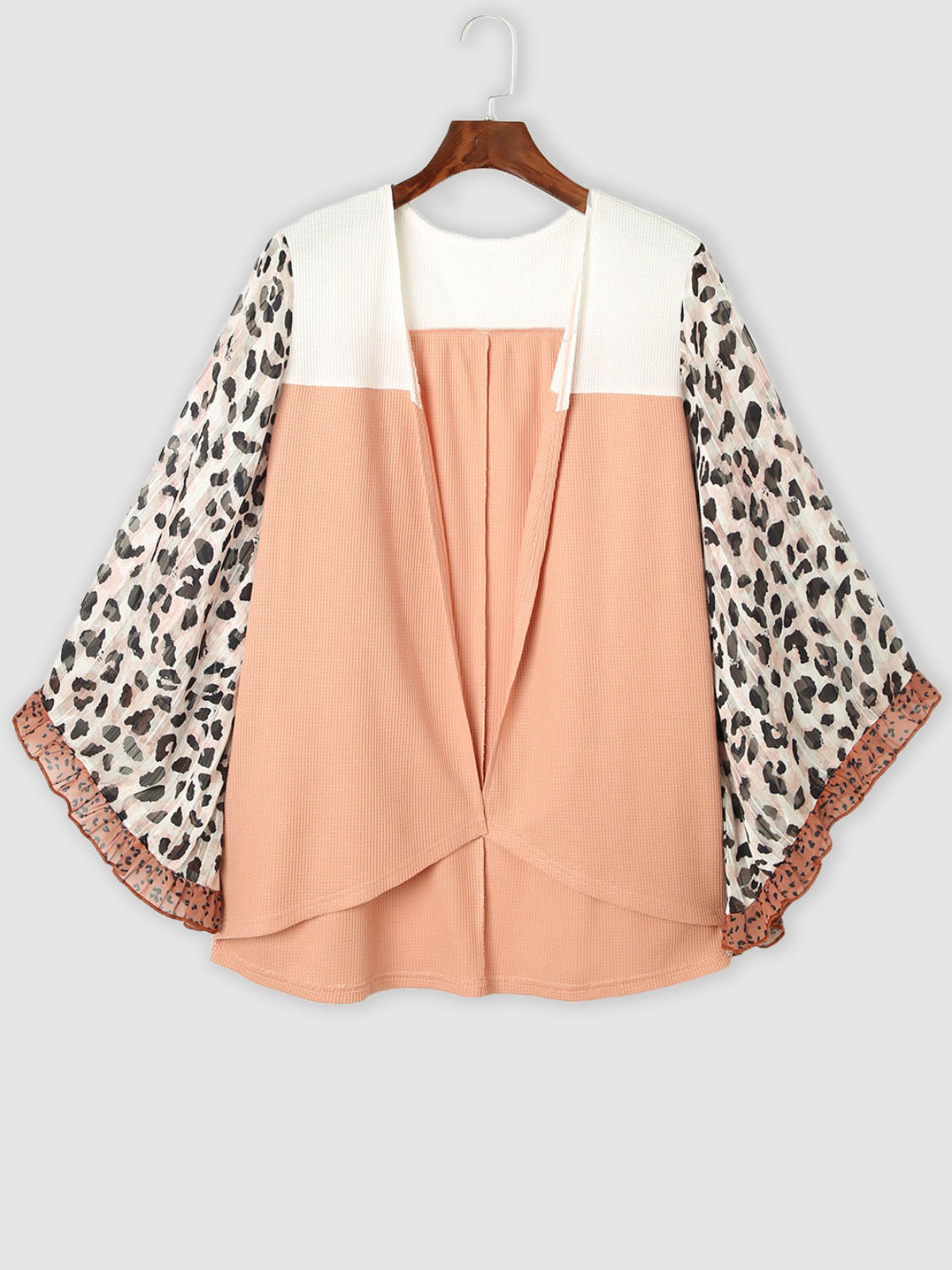 Plus Size Waffle-Knit Frill Leopard Cover Up