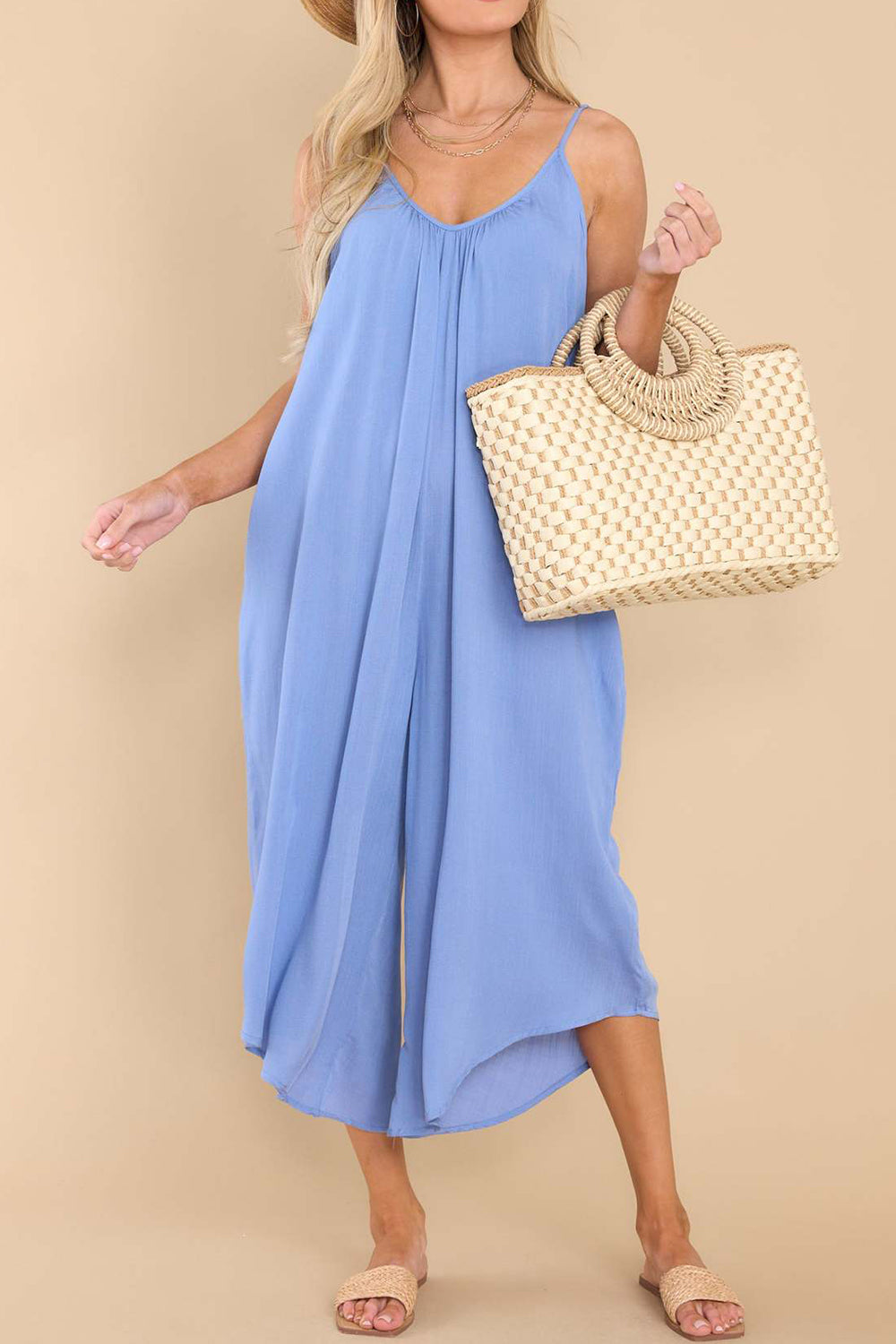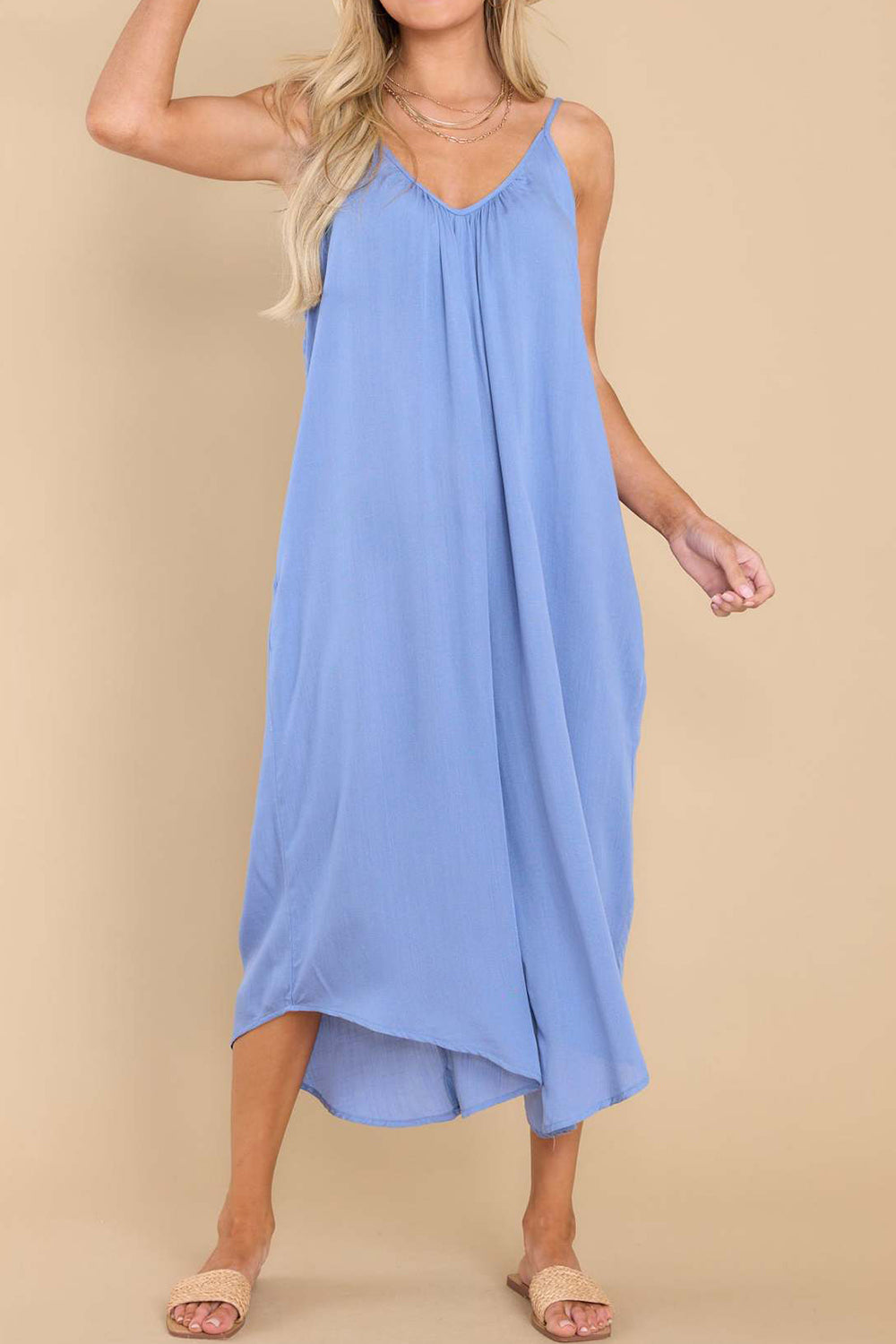 Pocketed Spaghetti Strap V-Neck Jumpsuit