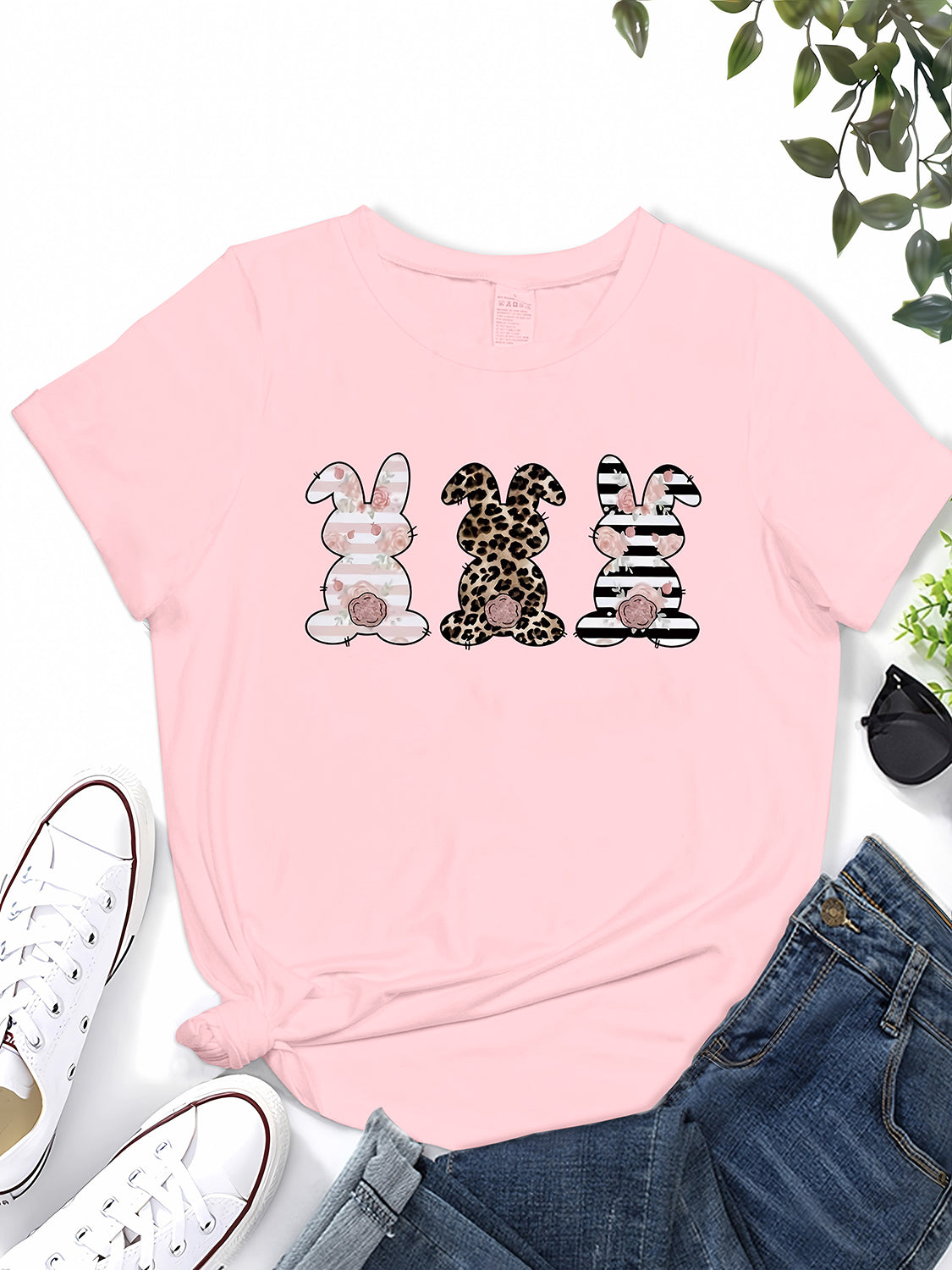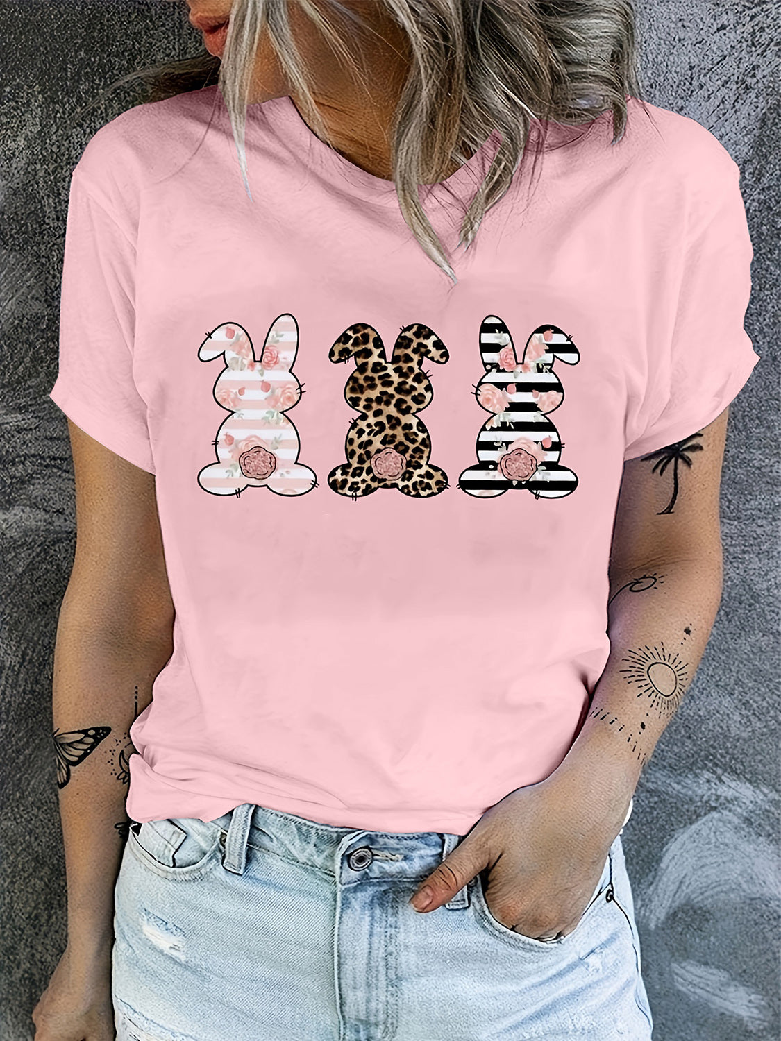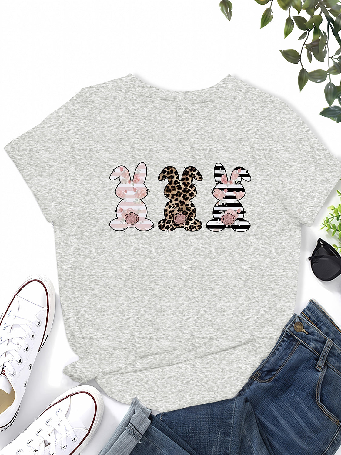 Rabbit Graphic Round Neck Short Sleeve T-Shirt