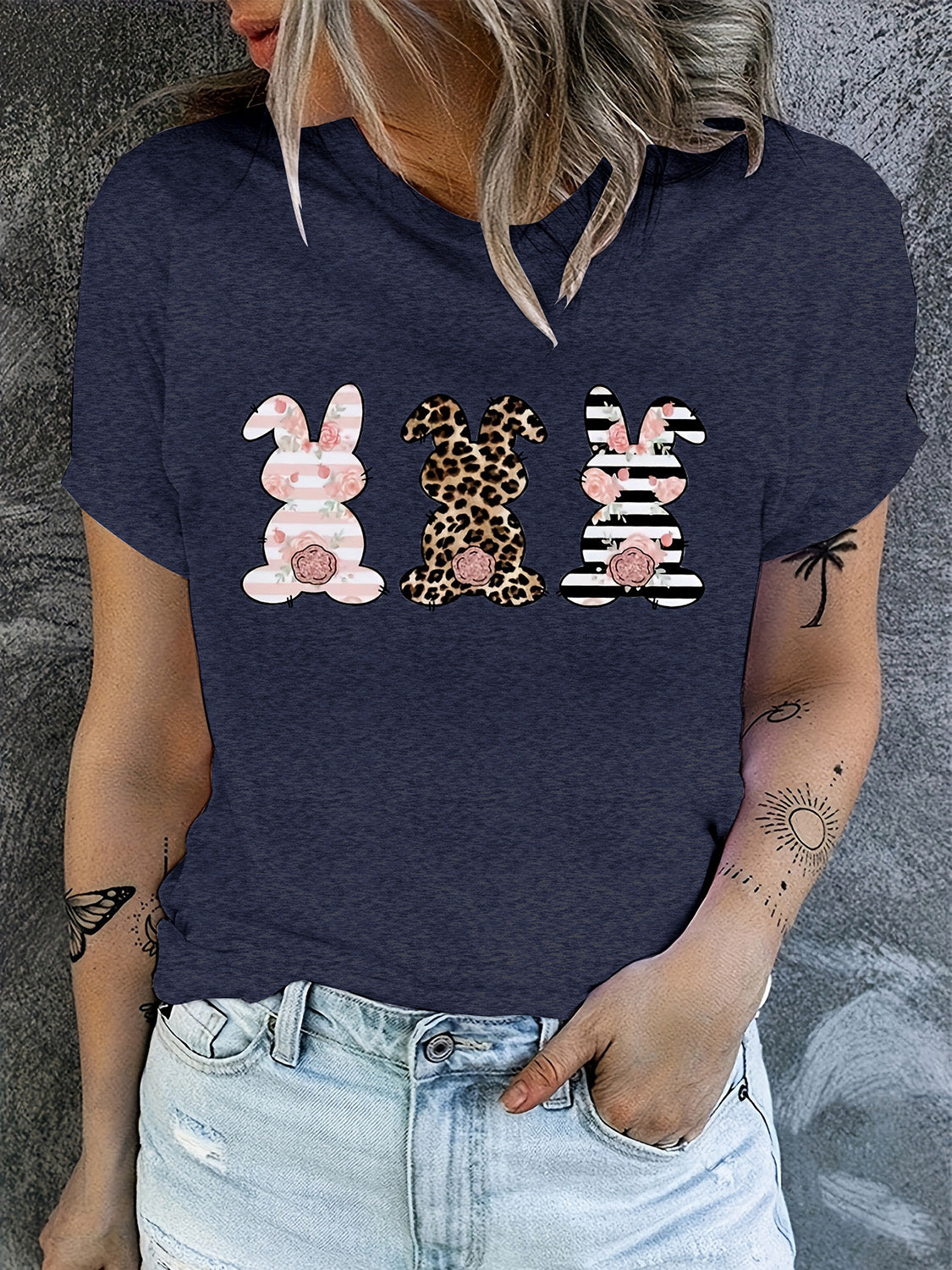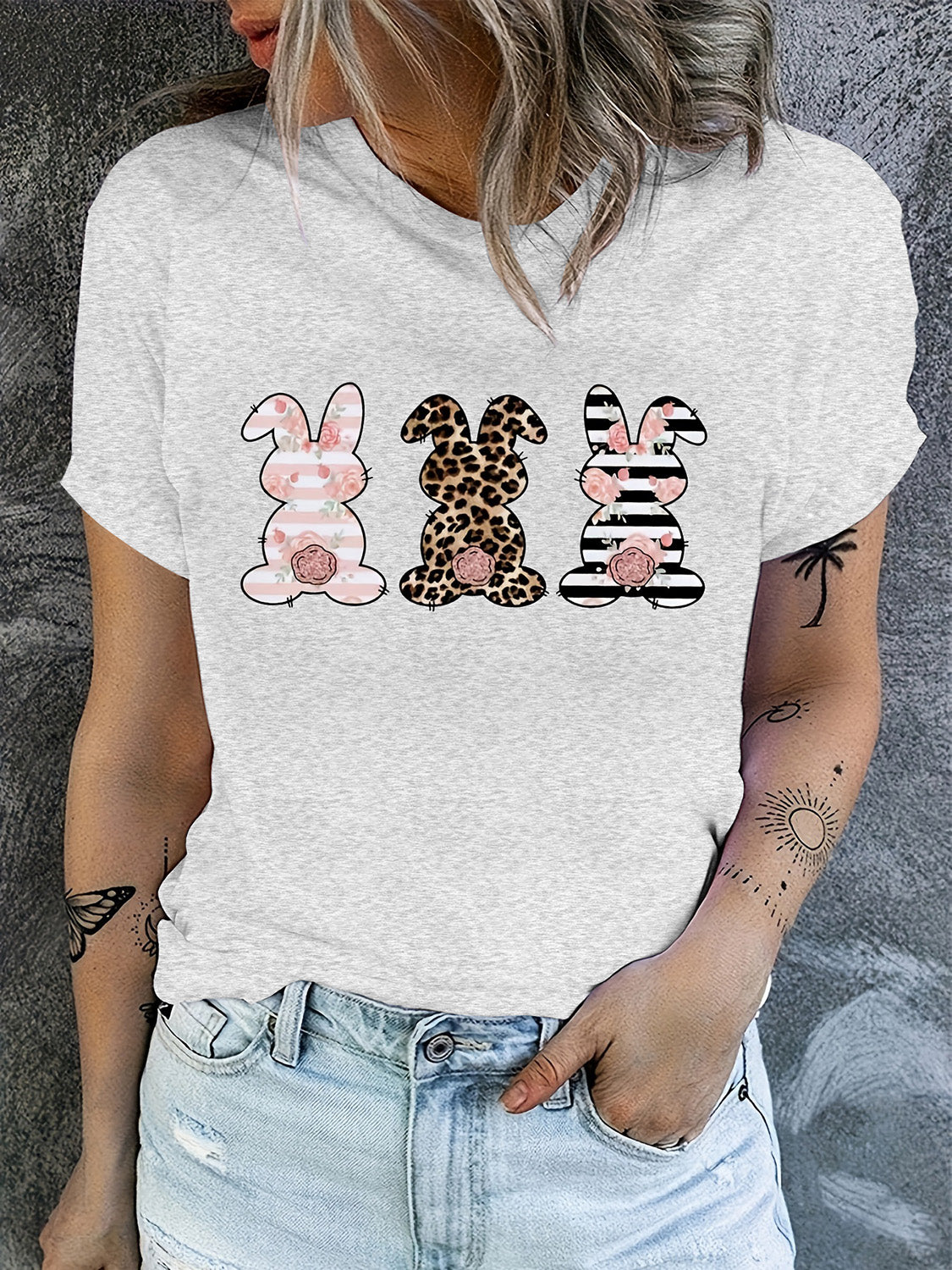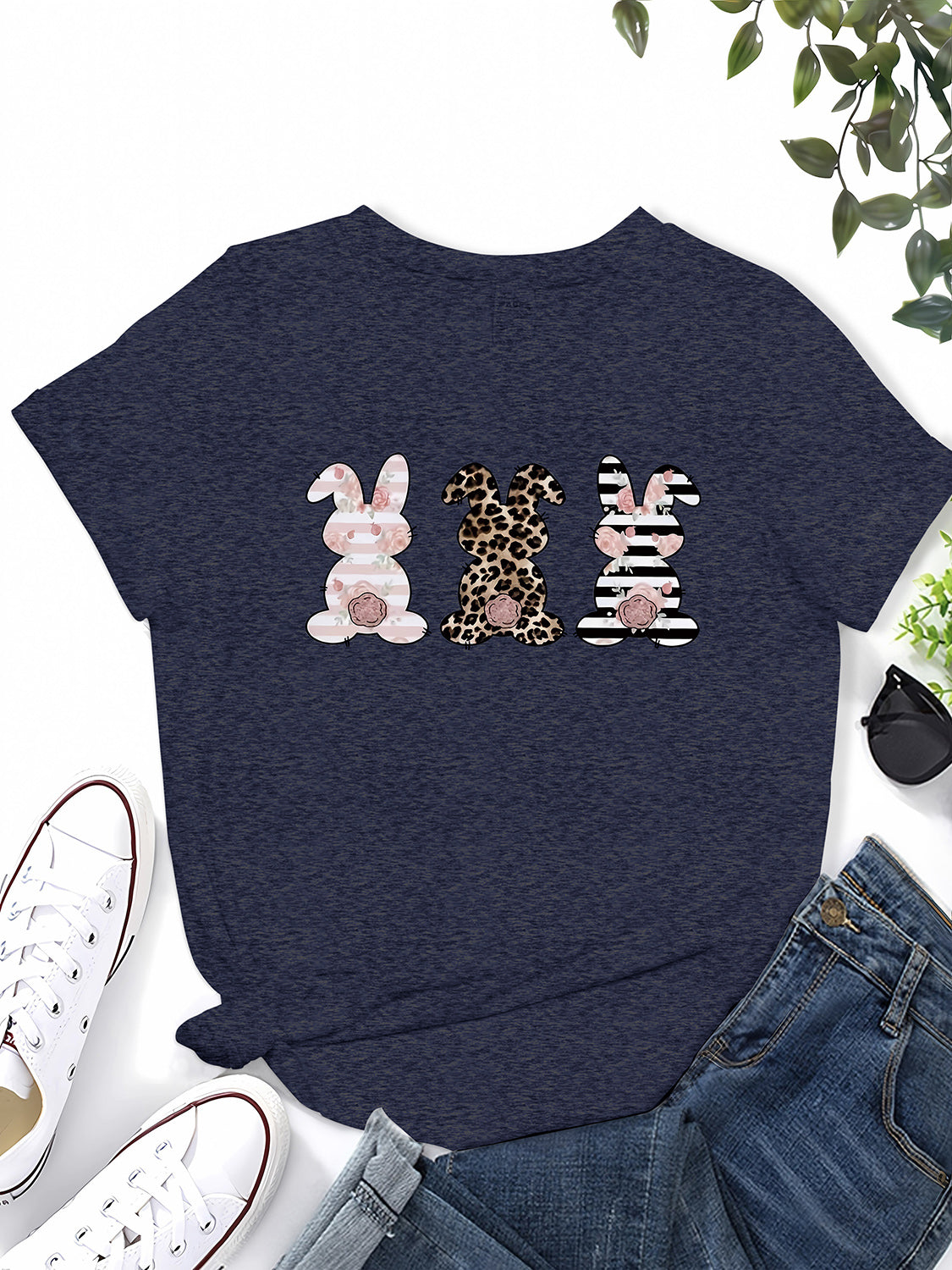 Rabbit Graphic Round Neck Short Sleeve T-Shirt